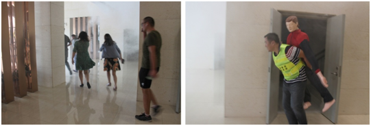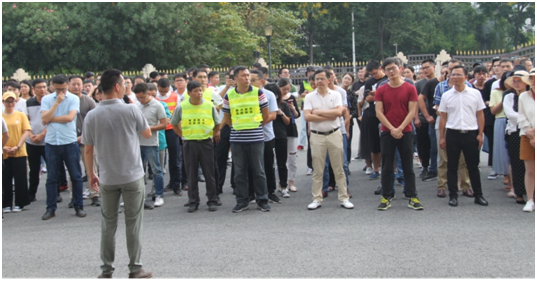 9月9日,參加演習的相關人員召開了演習前的安全會議,會議中介紹了消防疏散演習方案、流程、安全注意事項。確定了疏散集合點及消火栓滅火器演練點、明確了各個成員的職責以及對參加人員疏散演習時注意事項的說明。9月11日下午14:00,隨著警報聲的響起,領導小組發布演習開始的命令。各樓層工作人員在聽到火情警報后立刻停止手上工作,在疏散督導組人員的組織下從各樓層的安全通道撤離到疏散集合點。逃生的過程中,大家低著腰、沿著墻壁走,捂住鼻子、眼口,快速且有序,園區內所有人員在5分鐘內撤離集合完畢。